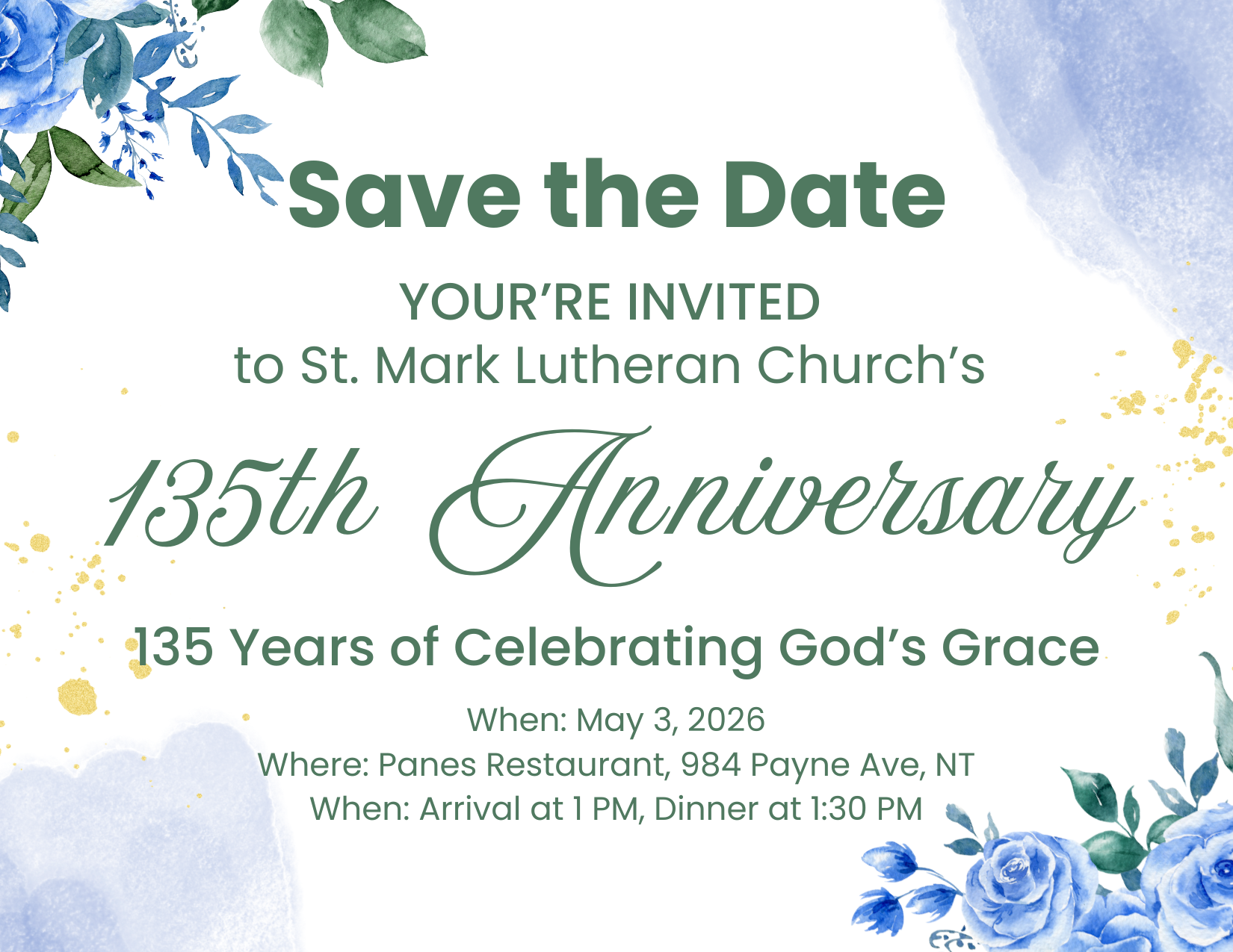 Join St. Mark Lutheran in Celebrating our 135th Anniversary!